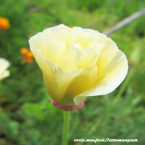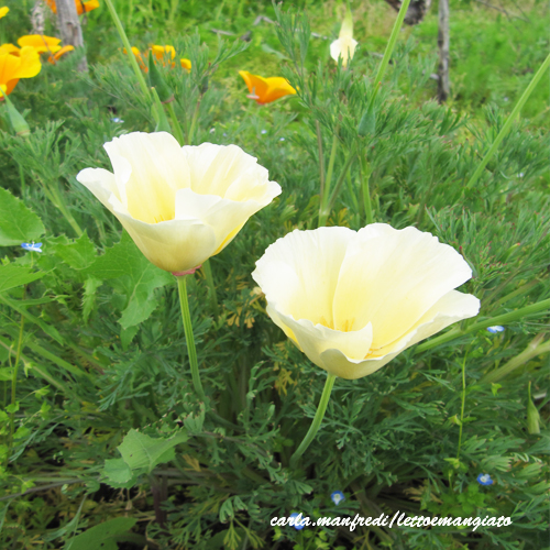 fiore che voglio deliziarvi con le immagini del cosidetto “papavero californiano”. e poi fiori come le calendule e la borragine hanno riempito il mio cestino di