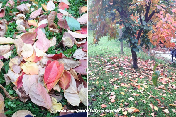 un meraviglioso albero di cachi maturi, con foglie dalle mille sfumature di rosso e sotto un prato ricoperto dalle sue foglie che sembrava un tappeto dipinto. ancora me lo sogno !!